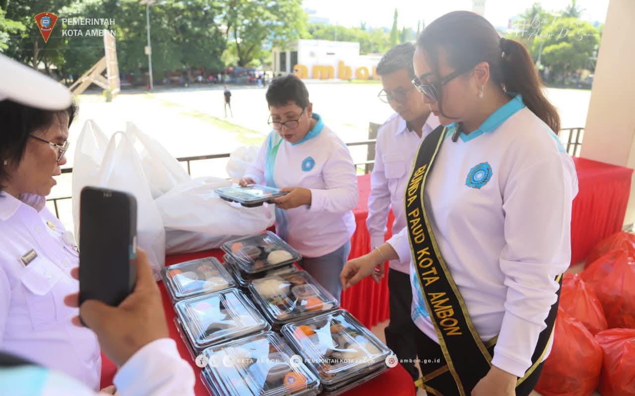 Ambon,moluccastimes.id-Melalui TP-PKK, Pemerintah Kota Ambon menyalurkan bantuan kepada anak yang beresiko dan terdiagnosa stunting, yang dilaksanakan di Tribun Lapangan Merdeka, Rabu 29/10/2025.