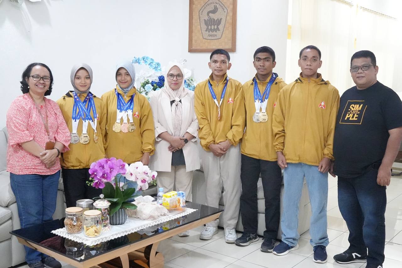 Capaian tersebut secara resmi ditandai dengan prosesi penyerahan simbolis sembilan medali oleh kontingen kepada Wakil Rektor Bidang Kemahasiswaan, Hubungan Masyarakat, dan Alumni Universitas Pattimura, Dr. Nur Aida Kubangun, S.Pd., M.Pd, bertempat di Ruang Kerja Wakil Rektor III, Jumat, 13/02/2026.