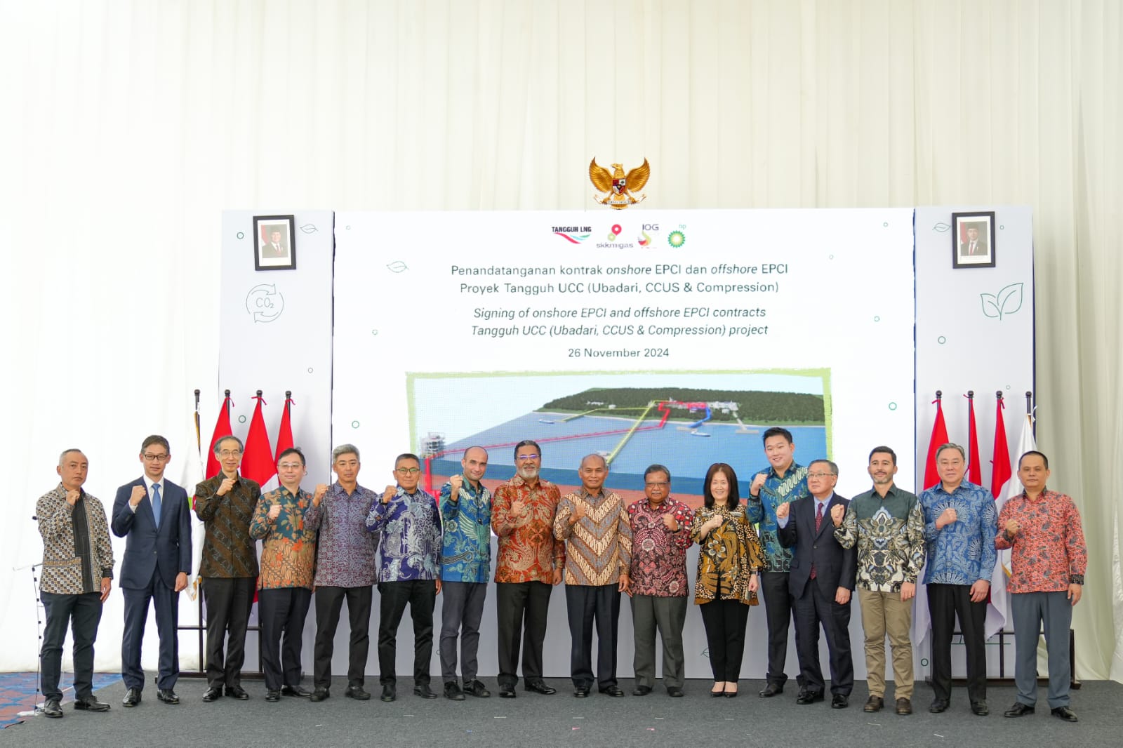 Sebelumnya, pengumuman atas keputusan investasi akhir (FID) senilai lebih dari US$7 miliar atau sekitar Rp 110 triliun atas Proyek Tangguh UCC sendiri disampaikan oleh CEO bp, Murray Auchincloss, atas nama bp dan para mitra kontrak kerja, kepada Presiden Prabowo Subianto di London tanggal 21 November 2024, pada saat kunjungan kerja perdana Presiden Prabowo ke Inggris sebagai bagian dari kunjungan beliau ke enam negara.
