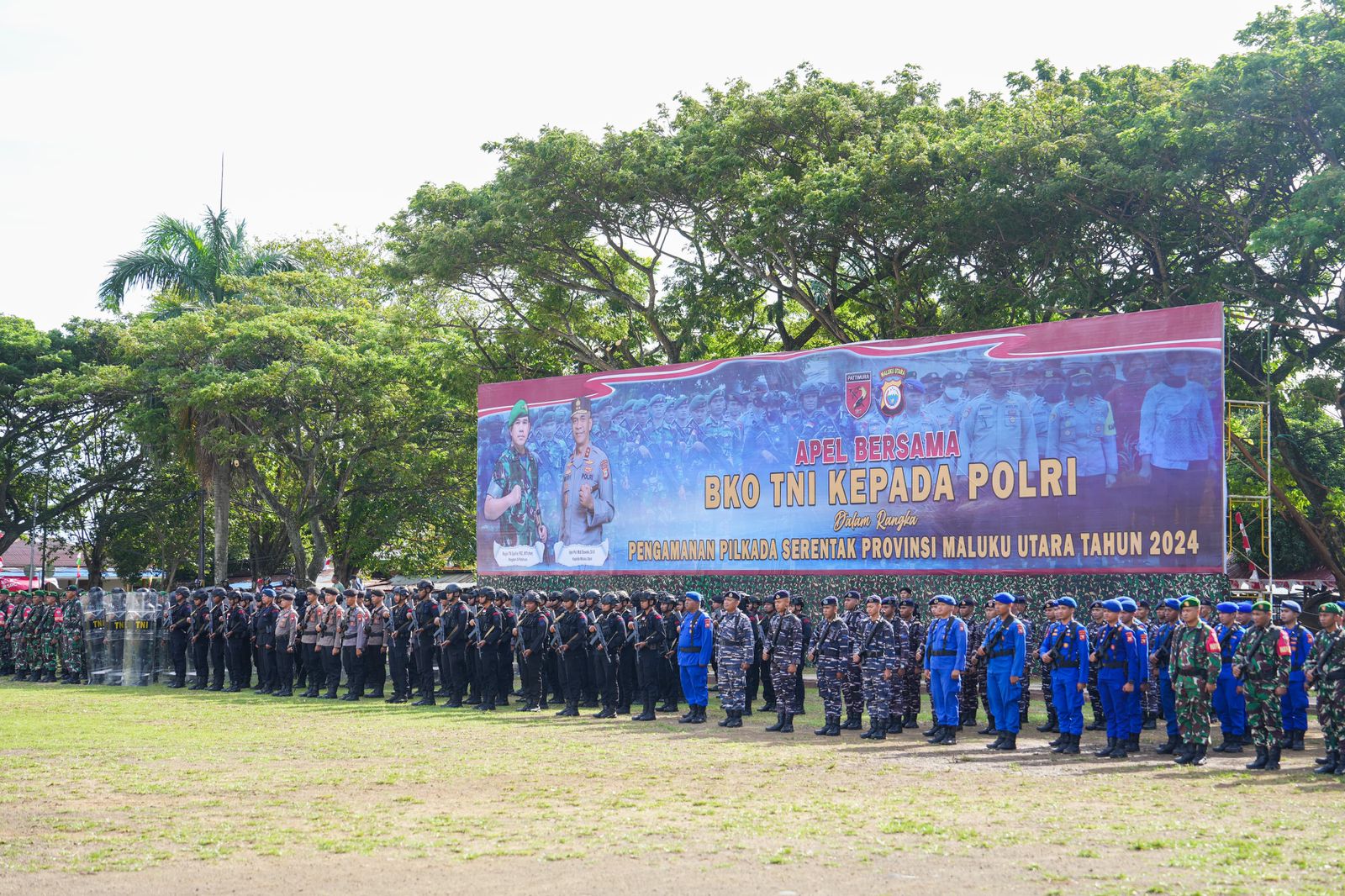 Penyerahan tersebut, dilaksanakan melalui Apel Bersama dilapangan Ngaralamo Ternate dan dihadiri oleh Sekprov Malut Abubakar Abdullah, Danrem 152/Baabullah Brigjen TNI Elkines Villando Dewangga K, M.AP., Kabinda Malut Kolonel Laut (P) M. Hamzah Soerjo Widodo, Danlanud Leo Wattimena Morotai Kolonel Pnb Soekarno, PJU Polda Malut, beberapa PJU Kodam XV/Pattimura, PJU Korem 152/Baabullah, Pimpinan Lembaga, Perguruan Tinggi, Partai Politik dan Tokoh masyarakat, serta diikuti oleh 1.000 Personil TNI Polri dan kendaraan Patroli.(MT-01)