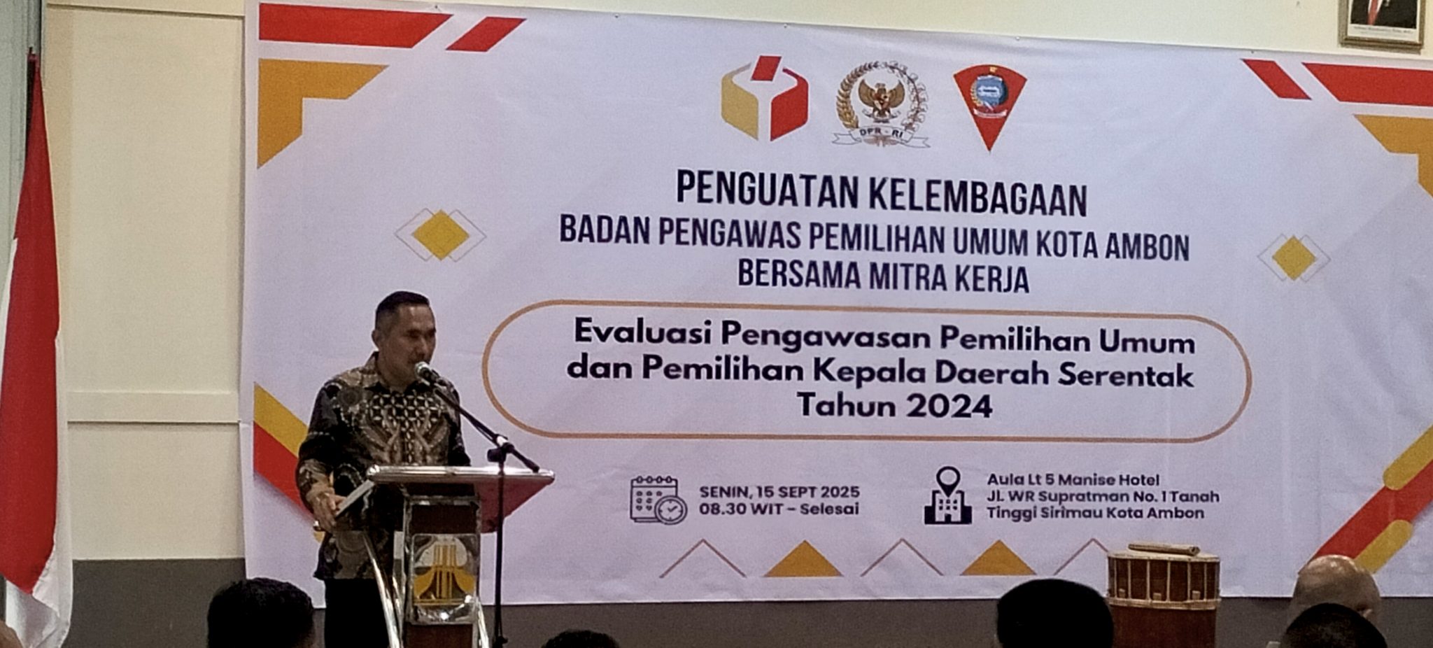 “Pemilu dapat terlaksana dengan tertib, jujur serta adil karena adanya sinergitas bersama masyarakat yang bersikukuh menjaga kedaulatan rakyat,” aku Wali Kota ketika membuka Penguatan Kelembagaan Bawaslu Kota Ambon bersama Mitra Kerja dan Evaluasi Pengawasan Pemilu serta Pilkada Serentak 2024 Senin, 15/09/2025.