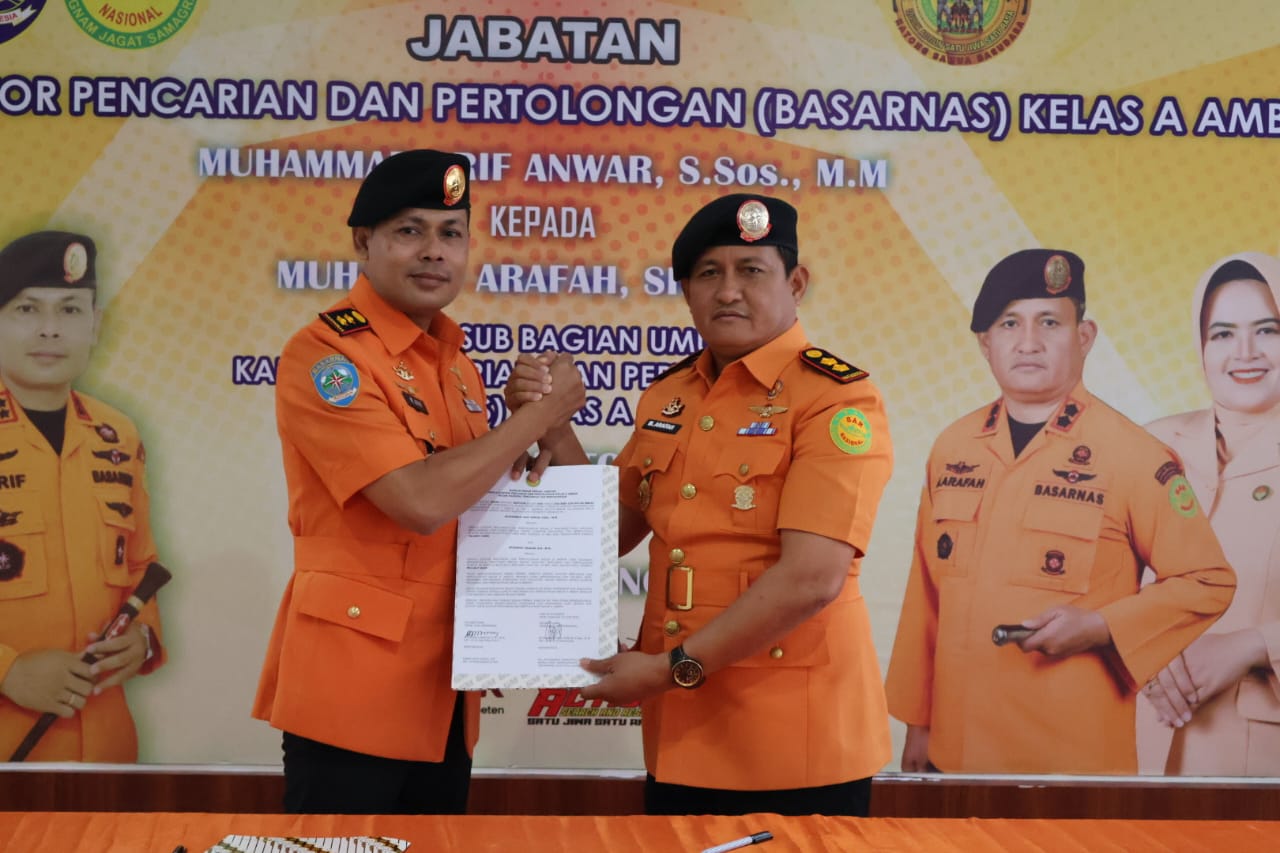 Ambon,moluccastimes.id-Kepala Basarnas Ambon, Muhammad Arif Anwar S.Sos., M.M dirotasi sebagai Kepala Basarnas Makassar dalam serah terima jabatan Kepala Basarnas Senin 10/06/2024.