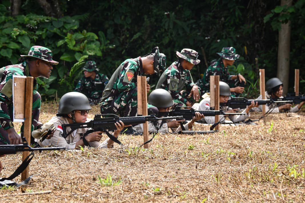 Salah satu materi yang diberikan dalam program Minggu Militer Kodaeral lX, adalah latihan menembak.