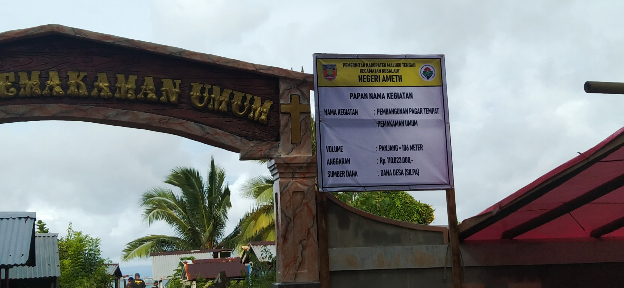 Ameth,moluccastimes.id-Dalam upaya meningkatkan kualitas prasarana umum, Pemerintah Negeri Samasuru Amalatu Ameth, Kecamatan Nusalaut, Kabupaten Maluku Tengah telah menyelesaikan pembangunan pagar pengaman Tempat Pemakaman Umum (TPU) Negeri Ameth.