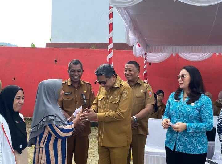 Tampak hadir Pj Sekertaris Daerah Kota Ambon R. Sapulette, ST, MT; Ketua TP PKK Kota Ambon, Felisa Wattimena, serta masyarakat sekitar. (MT-01)