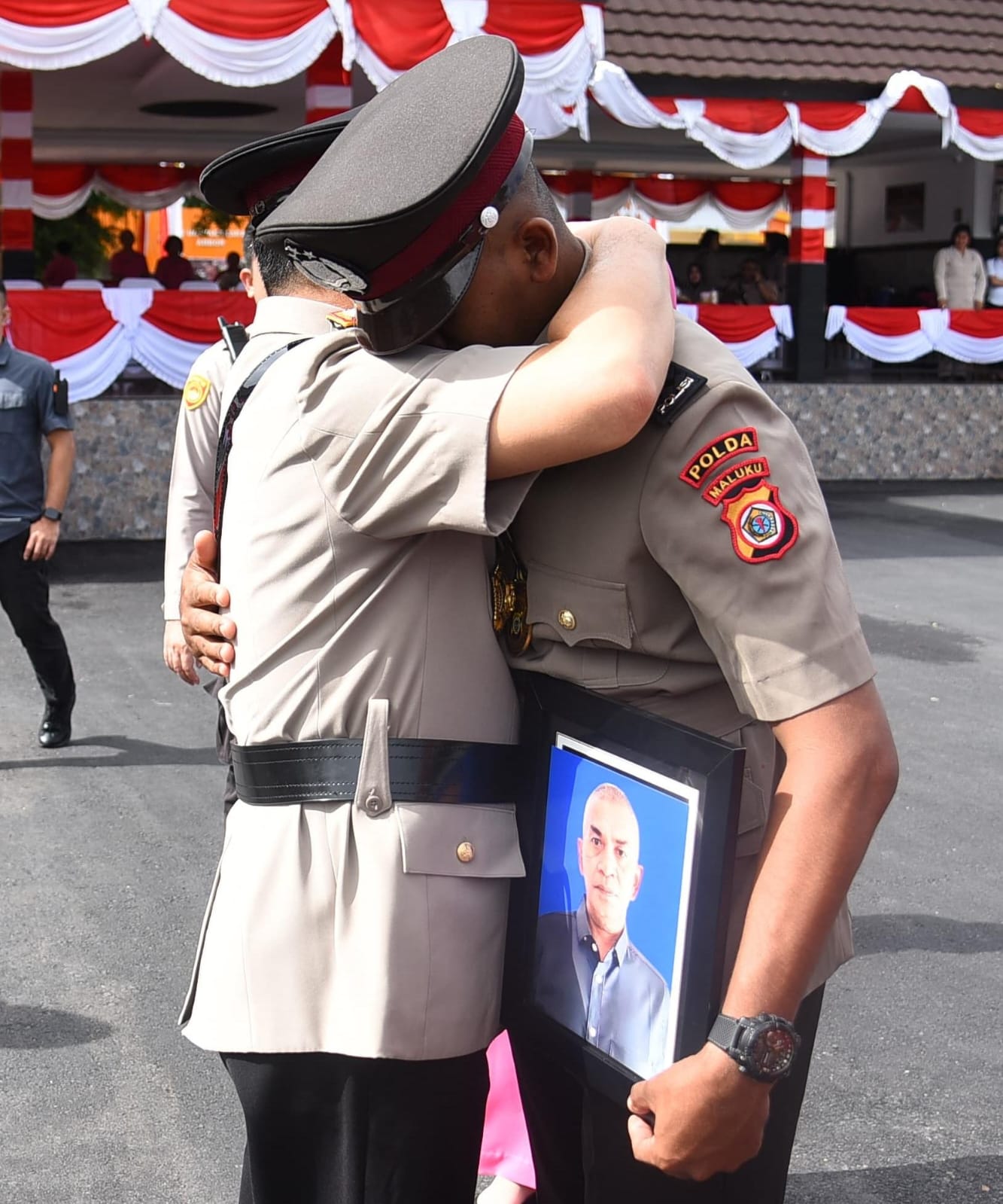 Kapolda Maluku, Irjen Pol Drs. Lotharia Latif SH., M.Hum menyampaikan ucapan turut duka cita kepada Mahulette yang saat itu didampingi sang ibu Aminah Wamnebo, sambil memberikan pelukan hangat bak seorang ayah.