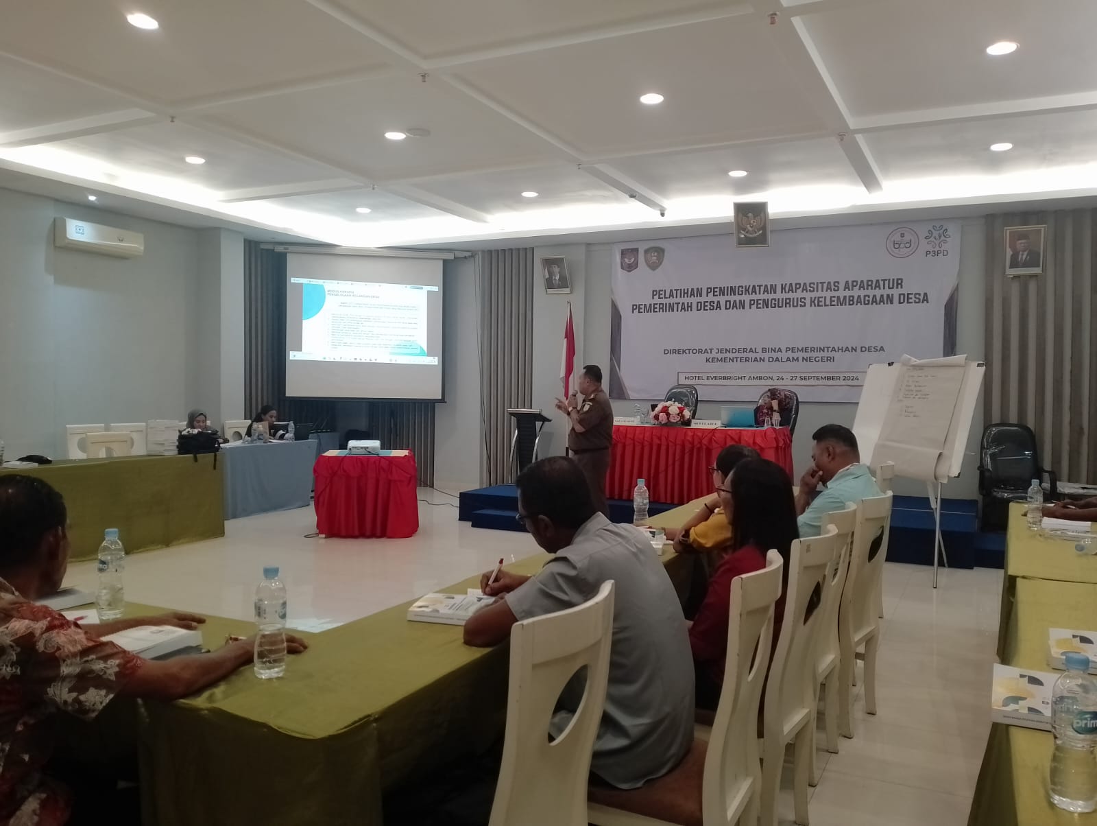 Ambon,moluccasimes.id-Guna meningkatkan kapasitas aparatur pemerintahan desa, Kementerian Dalam Negeri melalui Direktorat Jendral Bina Pemerintahan Desa menggelar Pelatihan Peningkaan Kapasitas Aparatur Pemerintahan Desa dan Pengurus Kelembagaan Desa 24-27 September 2024.