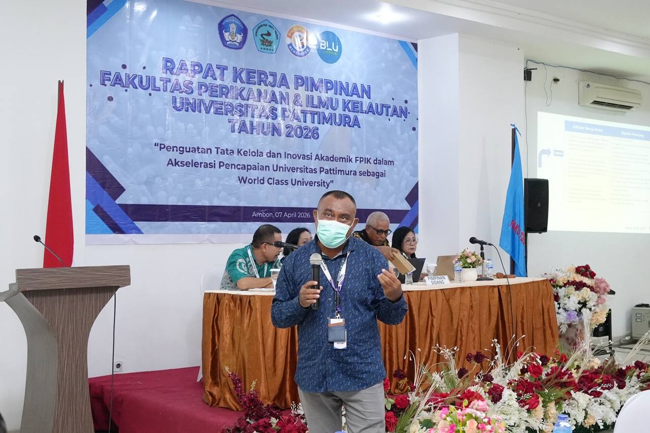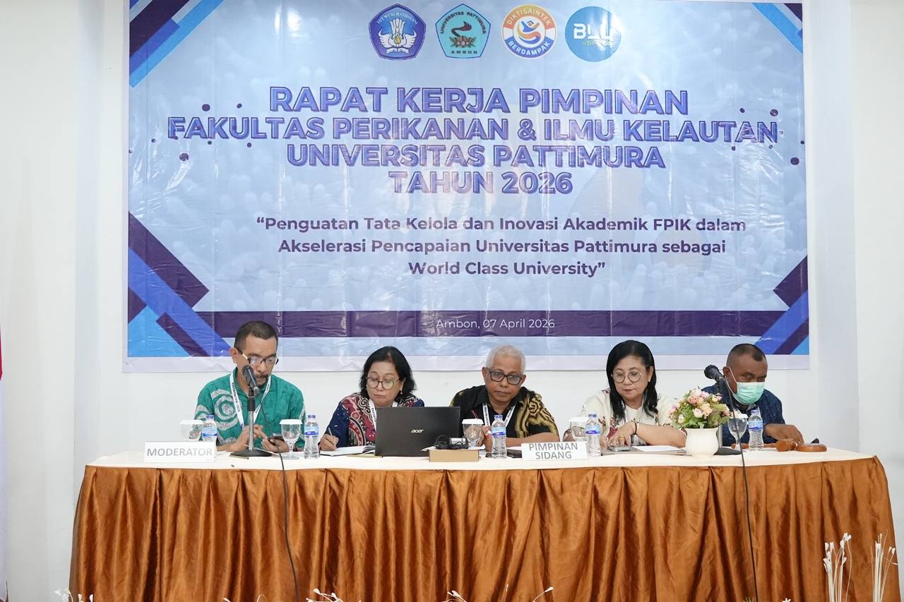 Ambon,moluccastimes.id-Dalam rangka mengevaluasi capaian kinerja sekaligus merumuskan strategi pengembangan fakultas kedepan, Fakultas Perikanan dan Ilmu Kelautan (FPIK) Universitas Pattimura (Unpatti) menggelar Rapat Kerja Pimpinan (Rakerpim) Tahun Anggaran 2026, Selasa, 07/04/2026.