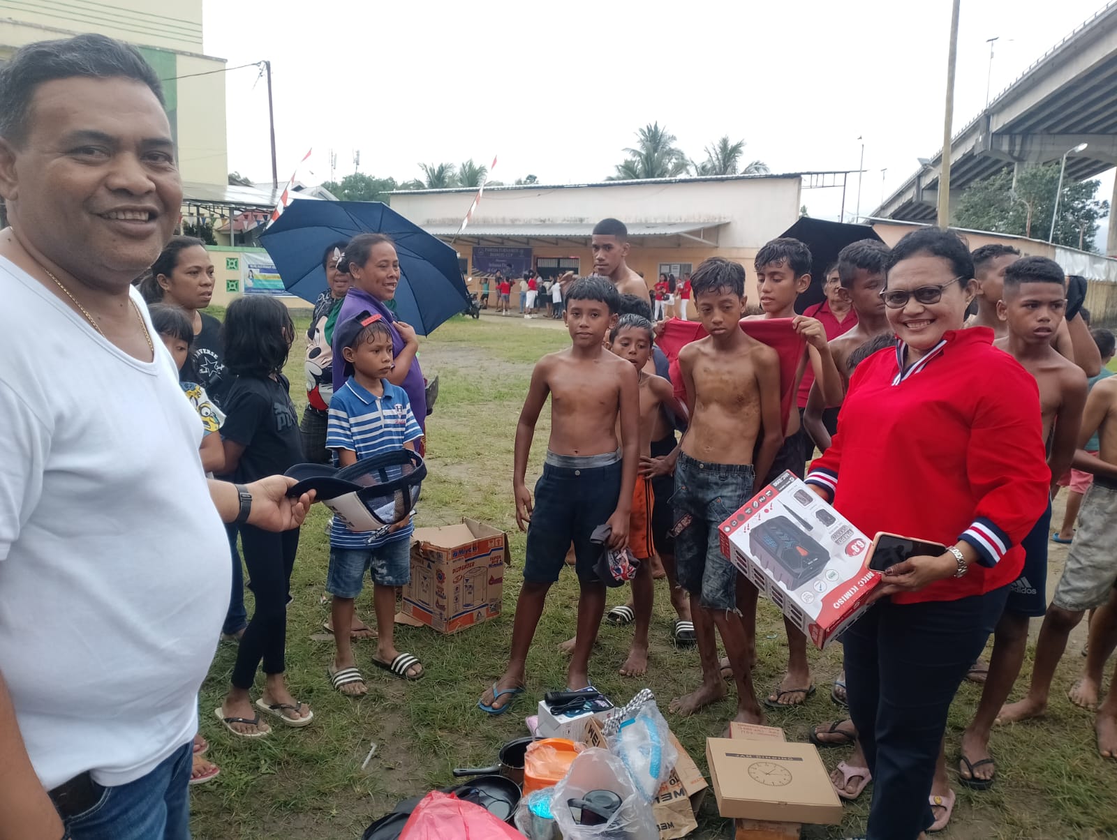 “Mereka bersama-sama saling membahu untuk mencapai puncak pohon pinang karena disana terdapat banyak hadiah. Sangat seru, Ada yang sudah sampai di tengah tetapi karena licinnya tiang, melorot dan jatuh lagi,” ungkap salah seorang warga, Oty Tentua sambi tertawa renyah.