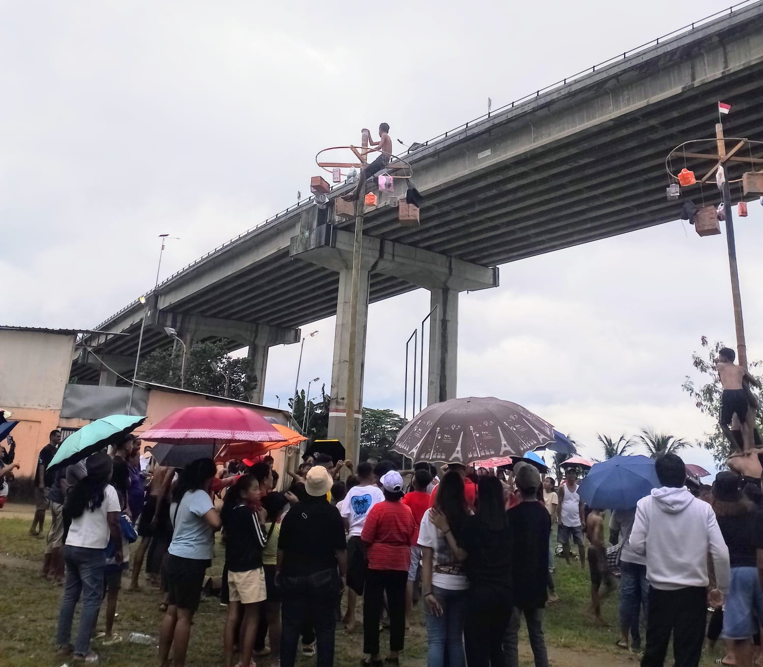 Kemeriahan masih berlangsung dalam lomba Panjat Pinang.
