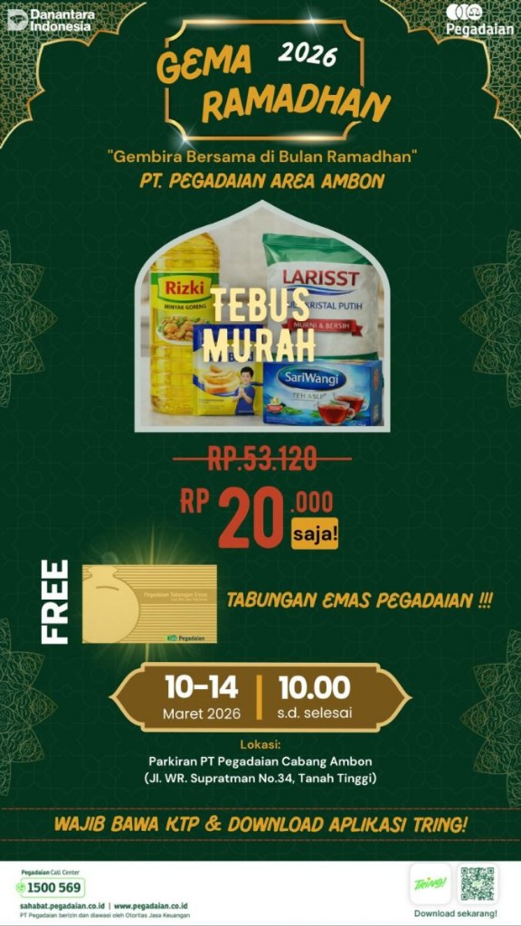 “Tebus Murah ini memungkinkan masyarakat menebus barang jaminan dengan biaya yang lebih ringan dibandingkan ketentuan normal terutama dalam momen Ramadhan ini,” tandasnya.