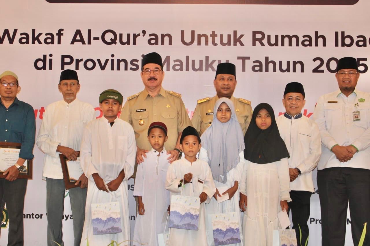 24.000 Wakaf Al-Qur’an tersebut, diserahkan oleh Gubernur Maluku Hendrik Lewerissa kepada Kepala Kantor Wilayah Kementerian Agama Provinsi Maluku H.Yamin dan Nahdlatul Ulama.