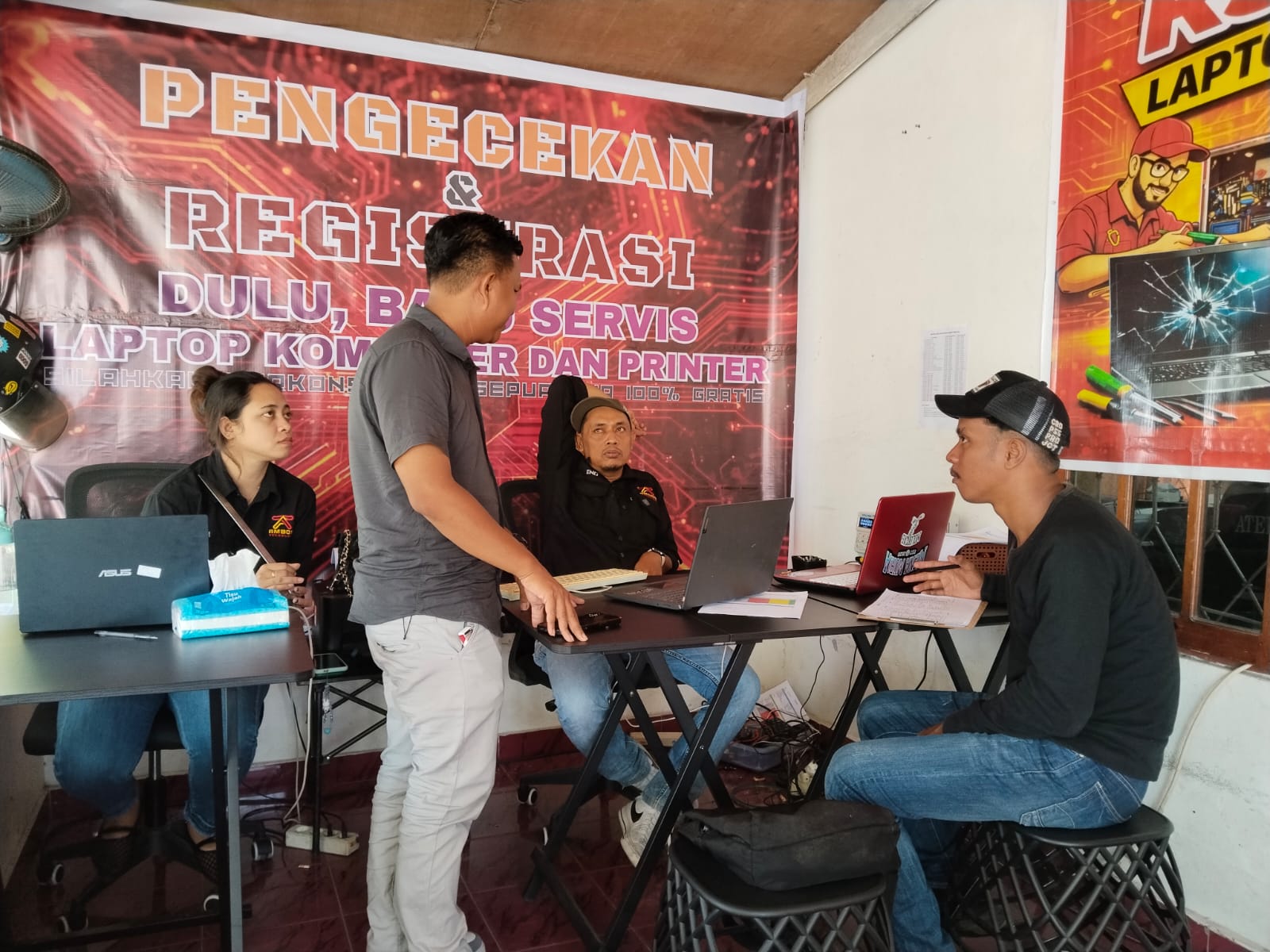 “Usaha ini saya rintis sejak tahun 2020 lalu. Mulai layanan dari pintu ke pintu, dimana ada pelanggan yang minta diperbaiki komputer, laptop atau printer akan saya datangi. Pekerjaan ini merupakan hobi sejak masih sekolah, saya suka sekali mengotak-atik komputer atau laptop yang rusak, dari sana saya belajar hambatan atau masalah yang membuat barang-barang tersebut tidak berfungsi,” cerita pemilik senyum manis in, Jumat 24/04/2026.