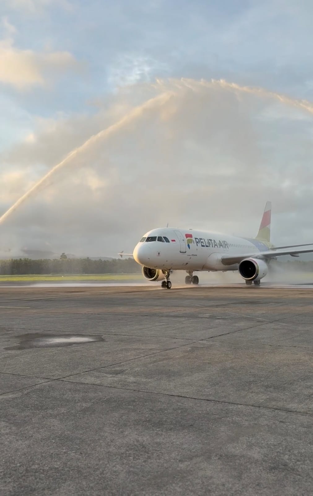 “Water Salute dari Airport Rescue Fire Fighting Bandara Pattimura serta pengalungan kain tenun kepada kru pesawat bahkan para tamu yang menumpangi Pelita Air merupakan ciri local wisdom Inaugural Flight,” tandas Shively.