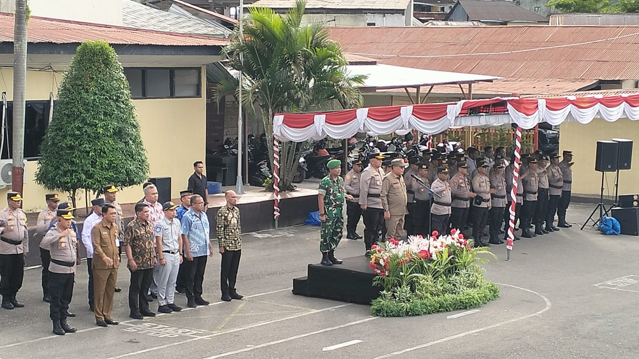 Wali Kota Ambon, Drs. Bodewin Wattimena, M.Si bertindak sebagai inspektur upacara sekaligus membacakan amanat dari Listyo Sigit Prabowo selaku Kepala Kepolisian Republik Indonesia.