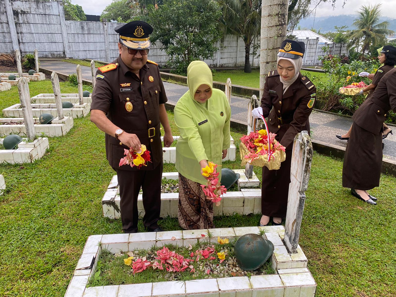 Menjelang Hari Bakti Adhyaksa (HBA) ke-64 dan Hari Ulang Tahun (HUT) Ikatan Adhyaksa Dharmakarini ke-24, Kejaksaan Tinggi (Kajati) Maluku menggelar upacara Ziarah di Taman Makam Pahlawan Kapahaha, Minggu 21 Juli 2024.