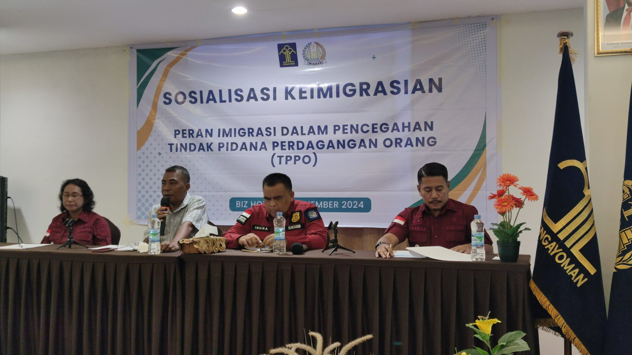 Sementara itu Kepala Seksi Teknologi Informasi Keimigrasian, Gresy Loretta Gaspersz, menyatakan tujuan sosialisasi adalah mensosialisasik Desa Binaan dan Peran Imigrasi Dalam Pencegahan Tindak Pidana Perdagangan Orang (TPPO).