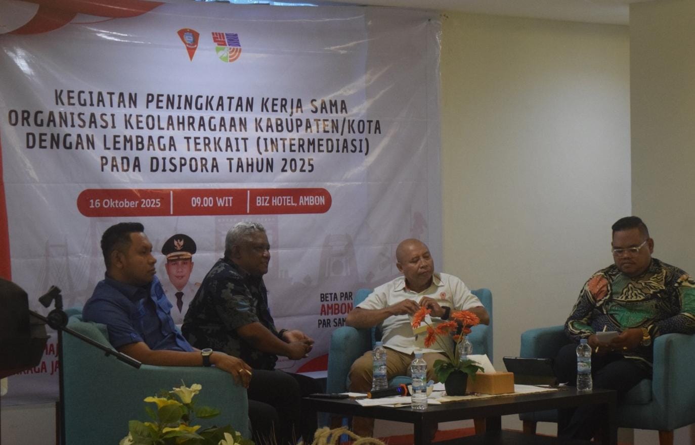 Demikian Staf Ahli Walikota Bidang Ekonomi, Pembangunan, dan Kesejahteraan Rakyat, Rustam Simanjuntak, ST, MT membuka Kegiatan Peningkatan Kerjasama Organisasi Keolahragaan Kabupaten/Kota dengan Lembaga terkait (Intermediasi) pada Dinas Pemuda dan Olahraga Kota AmbonTahun 2025, Kamis 16/10/2025.