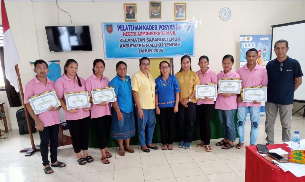 Kegiatan yang diselenggarakan selama 2 hari (18-19 Juli 2025) itu diakhiri dengan pemberian sertifikat pelatihan dari Puskesmas Hatawano sinergi Pemerintah Negeri Adminstratif Mahu kepada 6 orang kader Posyandu.