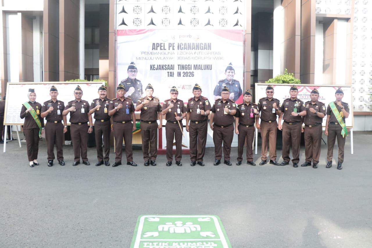 Apel Pencanangan Pembangunan Zona Integritas menuju WBK/WBBM tahun 2026 ini, dihadiri juga oleh Wakajati Maluku Adhi Prabowo, Asisten Pembinaan Cahyadi Sabri, Asisten Intelijen Diky Oktavia, Asisten Tindak Pidana Umum I Ketut Suwardi, Asisten Tindak Pidana Khusus Radot Parulian, Asisten Perdata dan Tata Usaha Negara Raden Sudaryono, Asisten Pemulihan Aset Devi F. Muskitta, Asisten Pidana Militer Kolonel Chk Satar M. Hutabarat, Asisten Pengawasan Bobby Ruswin, Kabag Tata Usaha Ariyanto Novindra, para Koordinator serta para Pegawai Jaksa dan Tata Usaha pada Kejaksaan Tinggi Maluku.(MT-01)