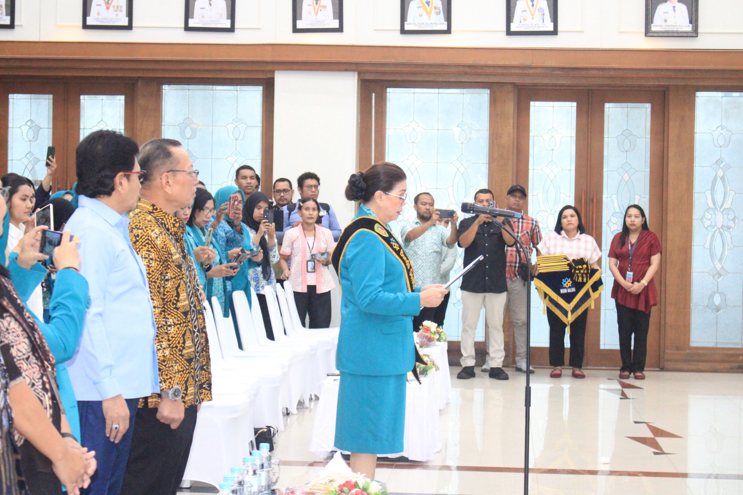 Ambon,moluccastimes.id-Staf Ahli Menteri Kependudukan dan Pembangunan Keluarga/BKKBN Bidang Hukum, Kelembagaan dan Reformasi Birokrasi, Viktor Hasiholan Siburian, mengukuhkan Bunda Generasi Berencana (GENRE) Provinsi Maluku, Maya Baby Lewerissa, di Aula Lantai 7 Kantor Gubernur Maluku. Jumat 13/06/2025.