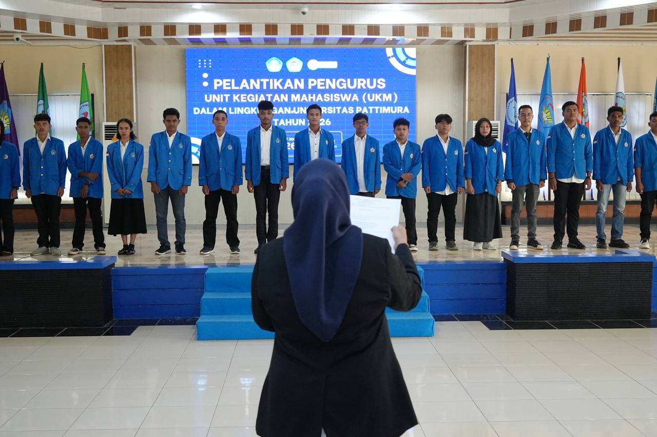 Hal tersebut diungkapkan Wakil Rektor Bidang Kemahasiswaan, Hubungan Masyarakat, dan Alumni Universitas Pattimura, Dr. Nur Aida Kubangun, S.Pd., M.Pd disela Pelantikan Pengurus Unit Kegiatan Mahasiswa ( UKM ) Universitas Pattimura, di Aula Rektorat Universitas Pattimura.