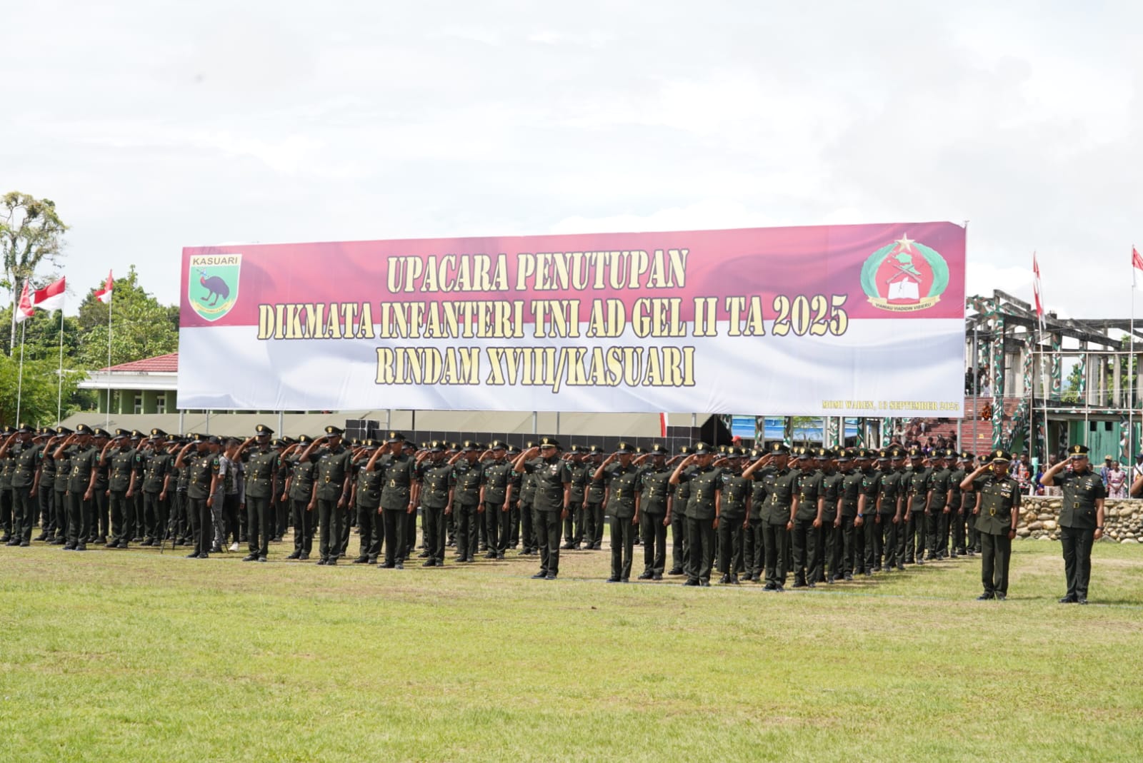 Manokwari,moluccastimes.id-Diawal pengabdian sebagai Pangdam XVIII/Kasuari, Mayjen TNI Christian Kurnianto Tehuteru berkenan melantik 480 putra terbaik asal Papua Barat dan Papua Barat sebagai prajurit TNI AD, dalam upacara penutupan Pendidikan Pertama Tamtama (Dikmata) TNI Angkatan Darat Gelombang II Tahun Anggaran 2025 di Lapangan Upacara Rindam XVIII/Kasuari, Momiwaren, Manokwari Selatan, Sabtu 13/09/2025.