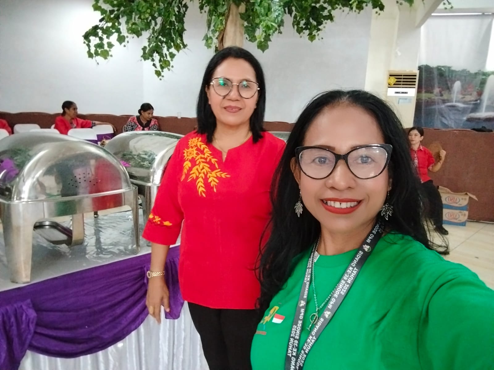 “Jadi per harinya, 6 jemaat yang melayani peserta untuk konsumsi. 1 jemaat terdiri dari 10 orang laki-laki dan perempuan. Setiap hari yang disediakan adalah sarapan pagi berupa kue dan teh atau kopi, kemudian makan siang, sorenya dijamu dengan snack serta teh dan juga kopi selanjutnya makan malam,” rincinya.