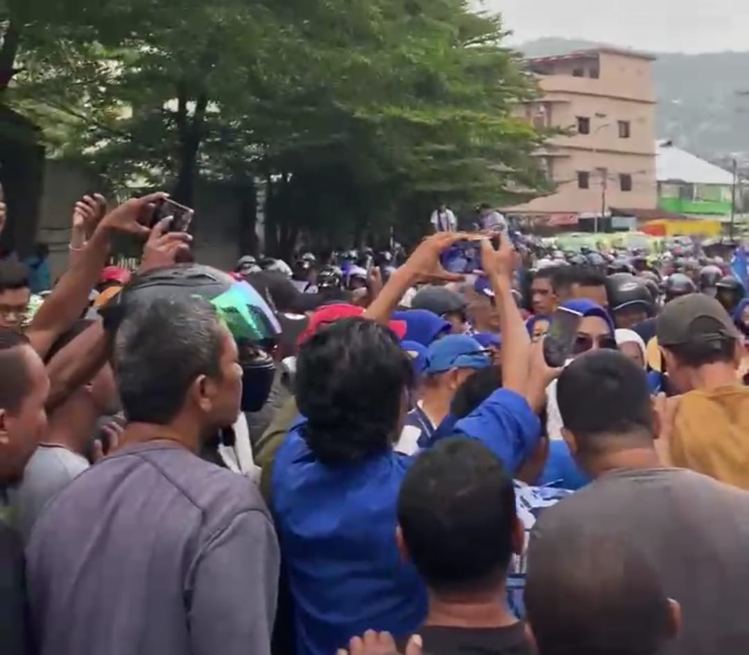Mereka menyusuri jalan dalam Kota Ambon kemudian berhenti di Lapangan Merdeka untuk bersua dengan pejuang kuli tinta yang akan membantu proses mereka dalam Pilkada 2024.