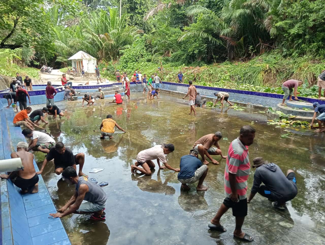 “Kegiatan pembersihan yaitu memotong rumput di dalam negeri, memotong dahan pohon yang tidak rapi, kemudian juga dilakukan pengecatan gedung gereja beberapa waktu lalu. Selanjutnya pembersihan juga dilakukan di kolam serta bak pemandian, ” timpalnya.