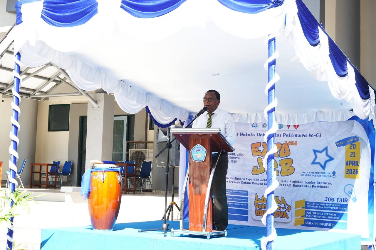 Ambon,moluccastimes.id-Sesuai agenda yang tertuang dalam perhelatan peringatan Dies Natalis Universitas Pattimura yang ke-63, terselip Pattimura Expo dan Job-Fair 2026 yang bertempat di pelataran Auditorium Unpatti, Senin 20/04/2026.