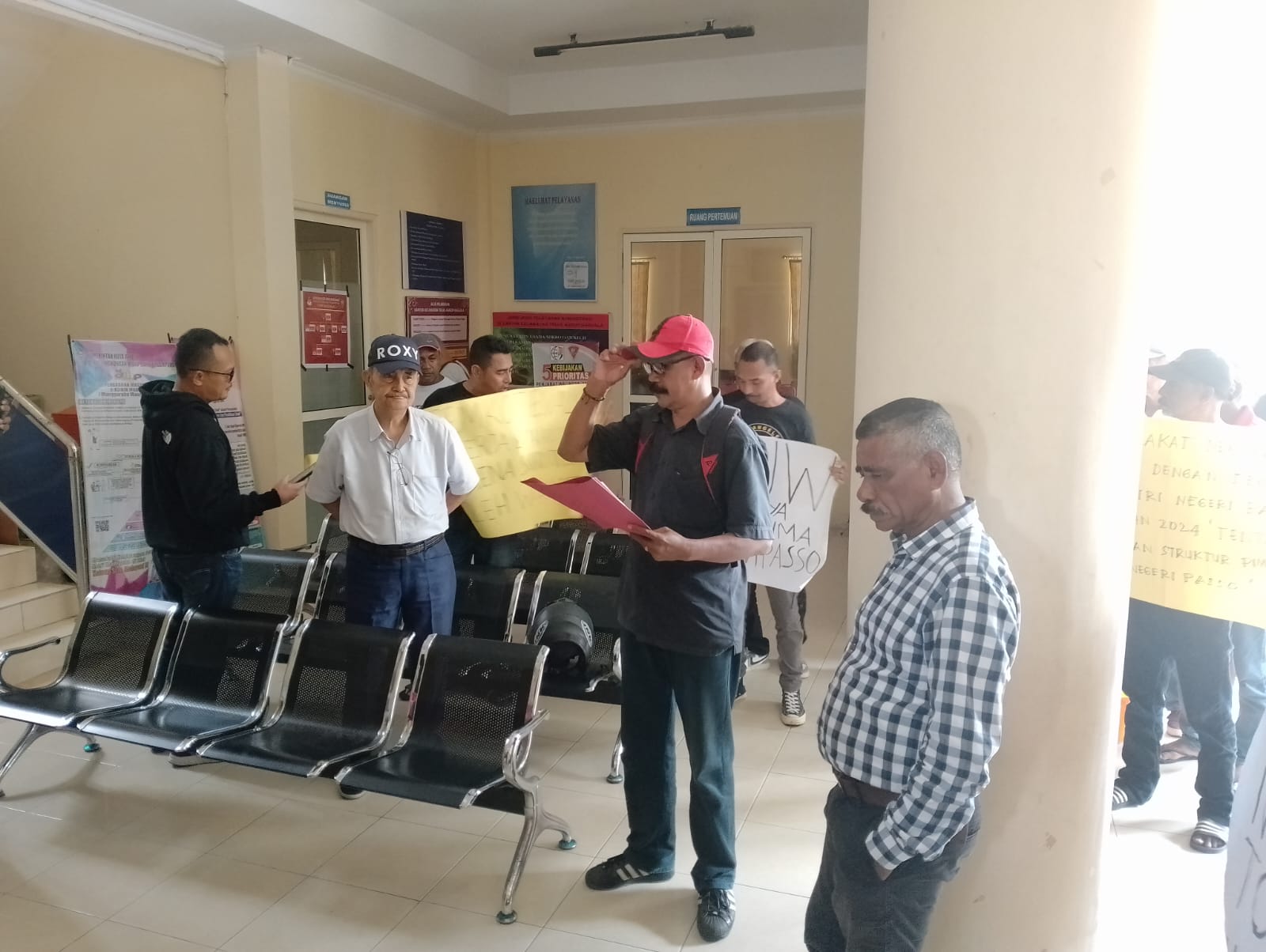 Seusai melaksanakan aksi demo di kantor Wali Kota Ambon, massa juga mendatangi Kantor Kecamatan Baguala untuk menyerahkan pernyataan sikap 4 Soa yang telah diorasikan di Balai Kota.