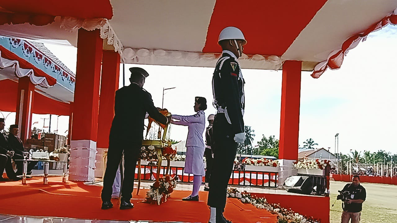 Dobo,moluccastimes.id-Bupati Kepulauan Aru, Timotius Kaidel bertindak sebagai Inspektur Upacara peringatan Hari Ulang Tahun (HUT) Kemerdekaan Republik Indonesia yang Ke-80 tanggal 17 Agustus Tahun 2025.