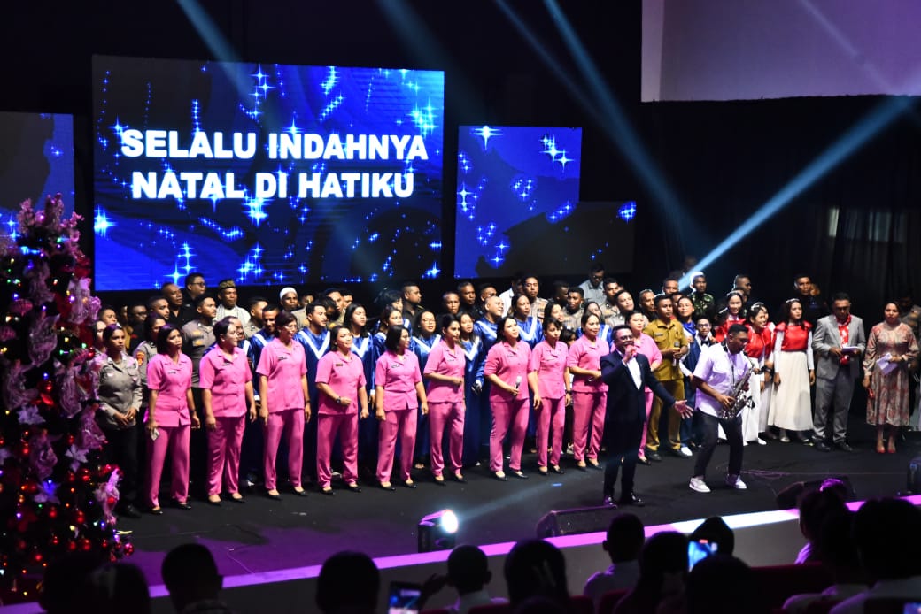 SeramBagianBarat,moluccastimes.id-Mengusung tema “Menyambut sukacita kelahiran Kristus dengan semangat melayani peran Polri Presisi guna mendukung program Pemerintah menuju Indonesia Emas”, Kepala Kepolisian Daerah Maluku Irjen Pol Drs. Eddy Sumitro Tambunan, M.Si, menghadiri perayaan Natal bersama masyarakat di Gedung Nunusaku, Kota Piru, Kabupaten SBB, Selasa 07/01/2025.