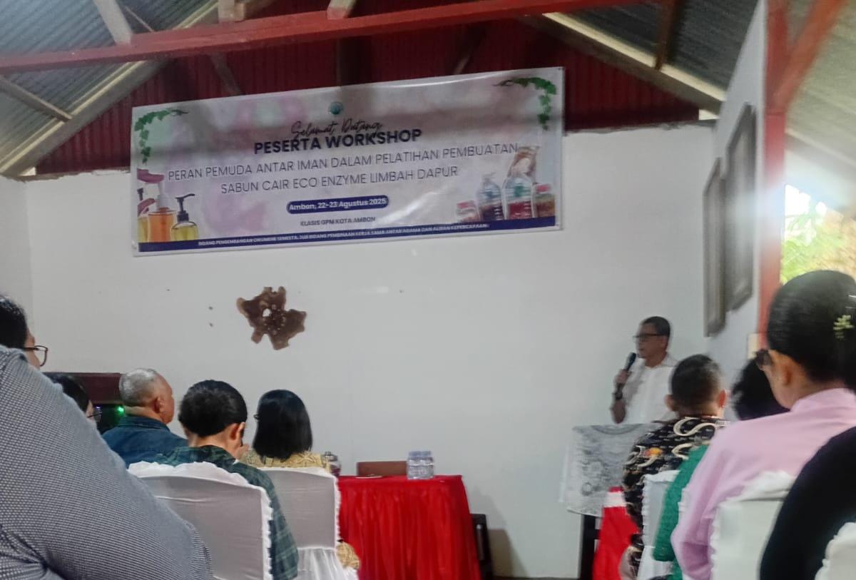 Ambon,moluccastimes.id-Dalam kaitan dengan pelaksanaan program kegiatan hasil keputusan Sidang ke-49 Klasis GPM Kota Ambon tahun 2025 pada Bidang Pengembangan Oikumene Semesta (POS), Sub Bidang Pembinaan Kerjasama Antar Agama dan Aliran Kepercayaan melaksanakan Workshop Peran Pemuda Antar Iman Dalam Menanggulangi Masalah Sosial-Lingkungan selama 2 hari (22-23 Agustus 2025).