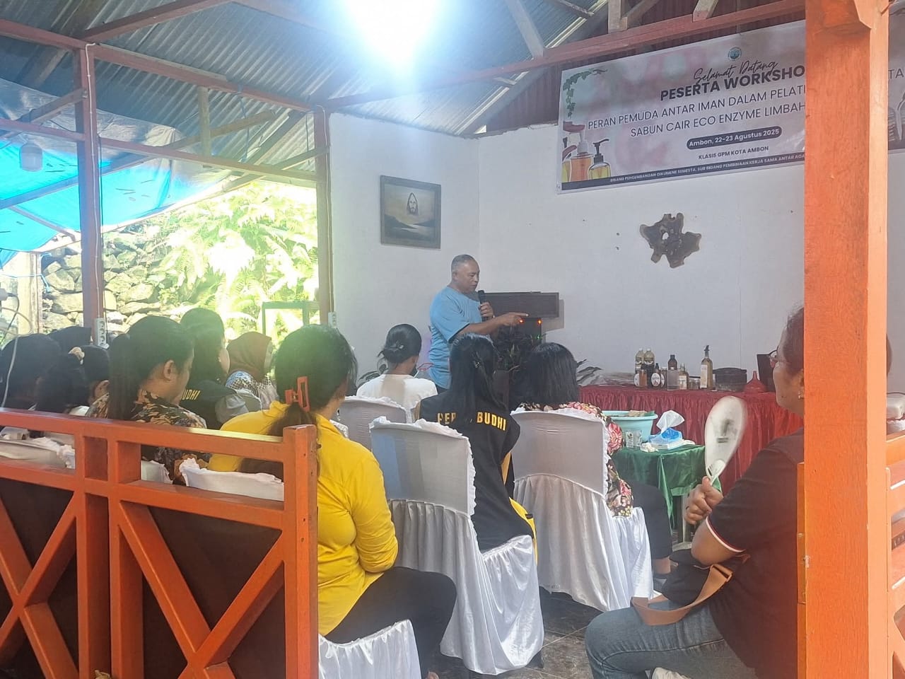 “Workshop ini melatih para pemuda lintas iman untuk membuat sabun cair Eco Enzym Limbah Dapur bertempat di Bengkel Kalesang Sampah Jemaat GPM Getsemani Bere-Bere, Kelurahan Batu Meja, Kecamatan Sirimau,” ungkap Ketua Sub. Komisi Hubungan Kerjasama Antar Iman ( Agama ) Klasis GPM Kota Ambon, Justus Pattipawae disela kegiatan, Sabtu 23/08/2025.