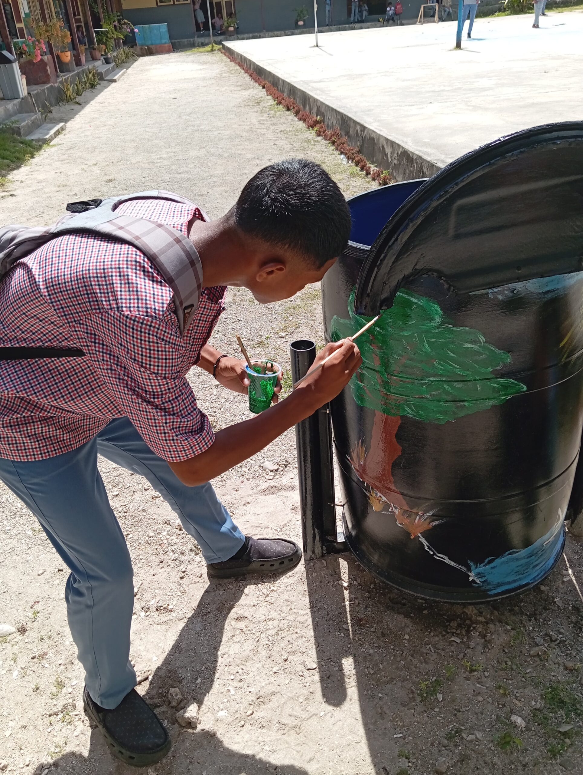 Daikui dalam koordinasi diusulkan jika sebaiknya tempat sampah diletakkan di areal sekolah.