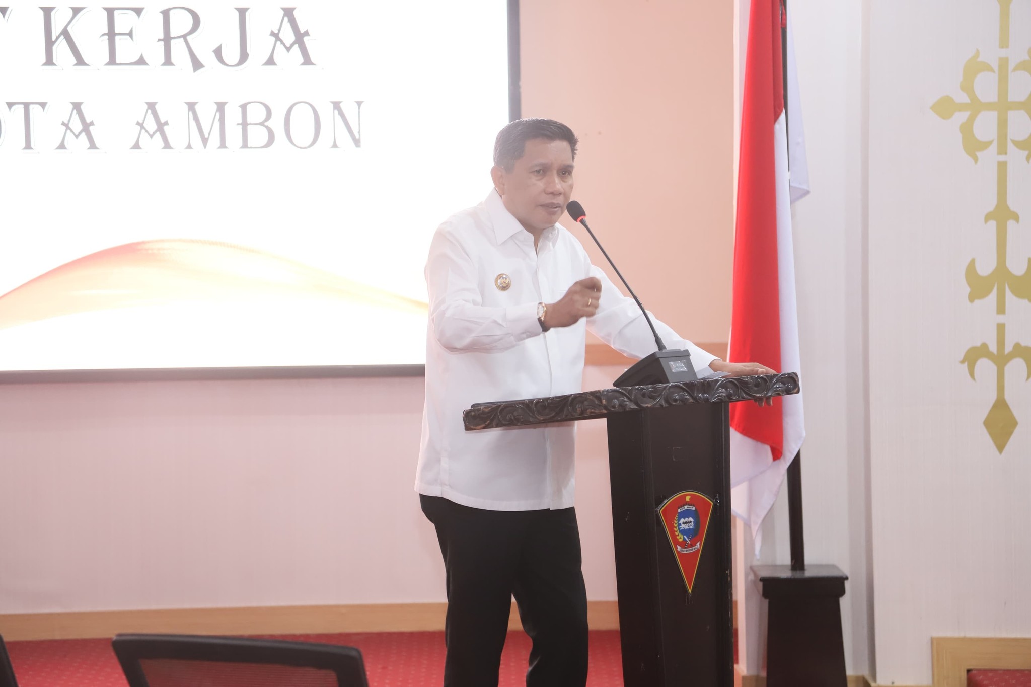 Demikian Wali Kota Ambon, Drs. Bodewin Wattimena, M.Si dalam Rapat Kerja KORMI Kota Ambon, Jumat 30/05/2025.