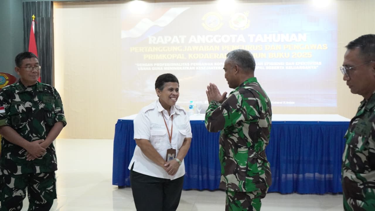 Ambon,moluccastimes.id-Rapat Anggota Tahunan (RAT) Pertanggungjawaban Pengurus dan Pengawas Primer Koperasi Angkatan Laut (Primkopal) Kodaeral IX Tahun Buku 2025 diharapkan mampu bertransformasi menjadi entitas ekonomi yang lebih sinergi, mandiri, tangguh, dan transparan demi mendukung kesejahteraan keluarga besar Kodaeral IX.