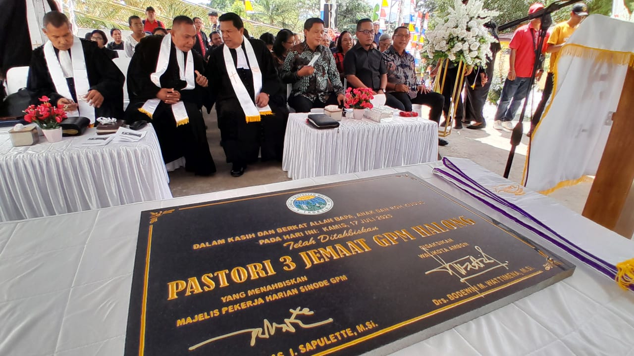 Demikian Wali Kota Ambon, Drs. Bodewin Wattimena, M.Si, disela pengresmian Gedung Pastori III Jemaat GPM Halong, Kamis 17/07/2025.