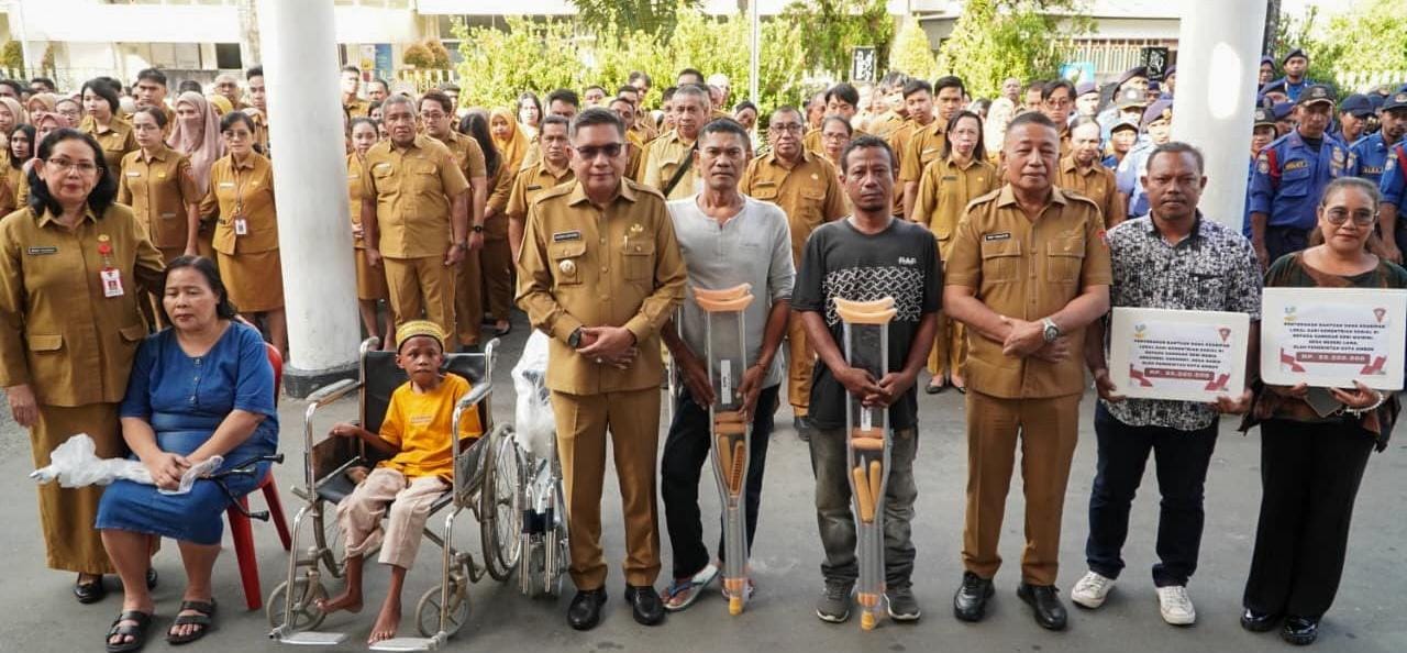 Hal ini ditandai dengan penyerahan Alat Bantu Bagi Penyandang Disabilitas serta Bantuan Kearifan Lokal oleh Kementerian Sosial kepada warga Desa Hunuth dan Nania, yang diserahkan Wali Kota Ambon, Drs. Bodewin Wattimena, M.Si disela apel pagi, Senin 20/10/2025.