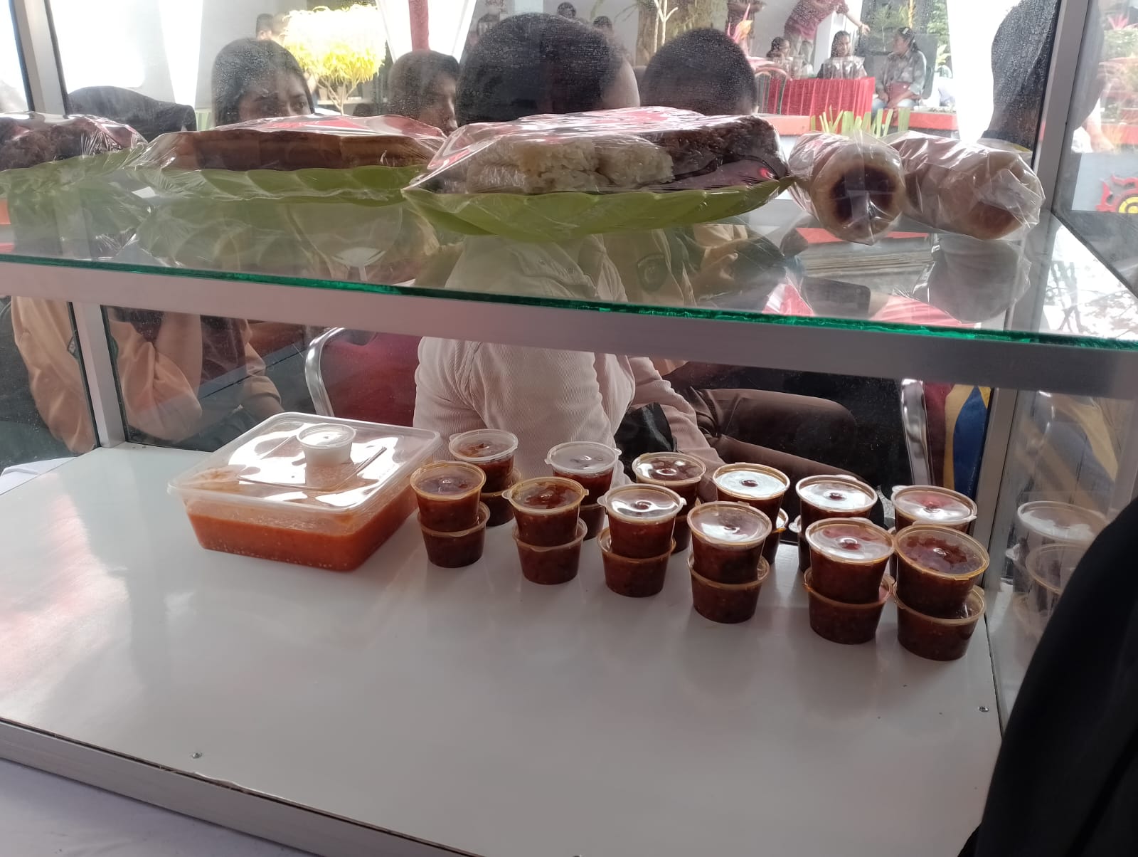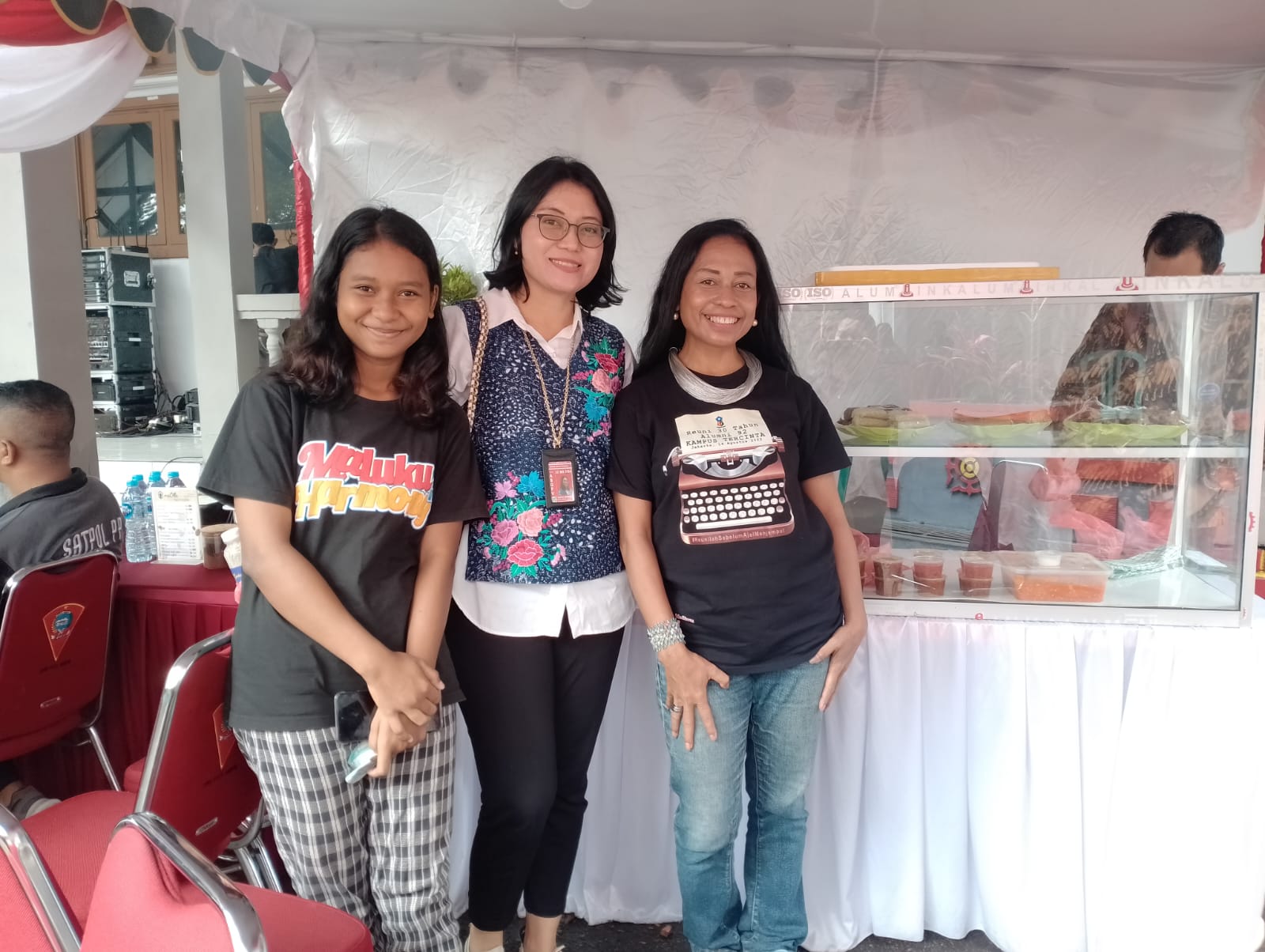 Wanita yang selalu tampil ceria itu, mampir di salah satu UMKM “Queency Shop” yang menjual aneka jajanan khas Ambon, jus gandaria dan Sambal Roa.
