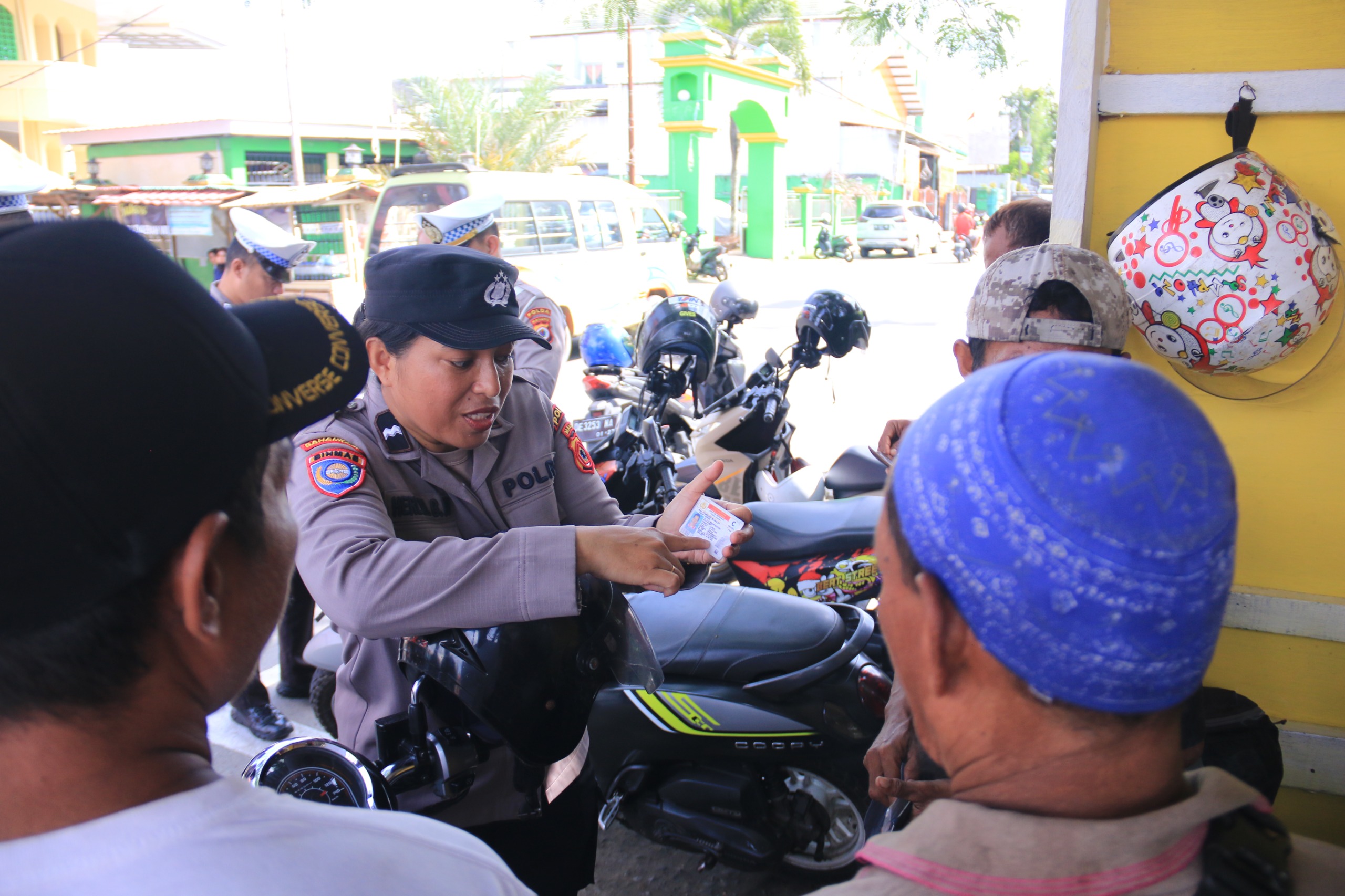 Ipda Rommy Pradipta, S.H., CBA yang memimpin Satgas Preemtif Operasi Keselamatan Salawaku juga mengingatkan para tukang ojek untuk selalu menaati rambu-rambu lalulintas.