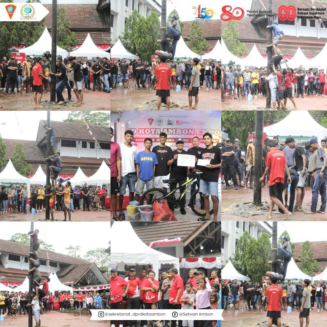 Kegiatan diselingi dengan panjat pinang yang menyedot perhatian seluruh yang hadir, termasuk Wali Kota beserta Forkopimda yang hadir turut menyaksikan perebutan hadiah yang tergantung di puncak pinang. Euforia dengan pekikan menggema untuk memberi dukungan bagi pemanjat yang telah menghitam tubuhnya akibat cairan pelicin pada tiang yang dipanjat.