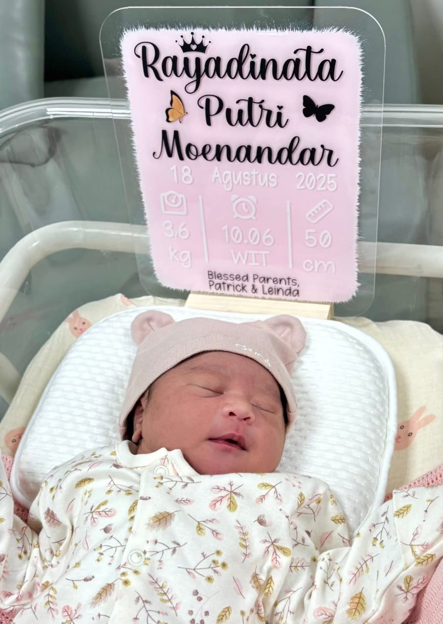 Rayadinata Putri Moenandar, putri kedua dari pasangan Patrick Moenandar SE dan Leinda Wattimena itu lahir sehari setelah HUT Kemerdekaan RI yaitu 18 Agustus 2025.