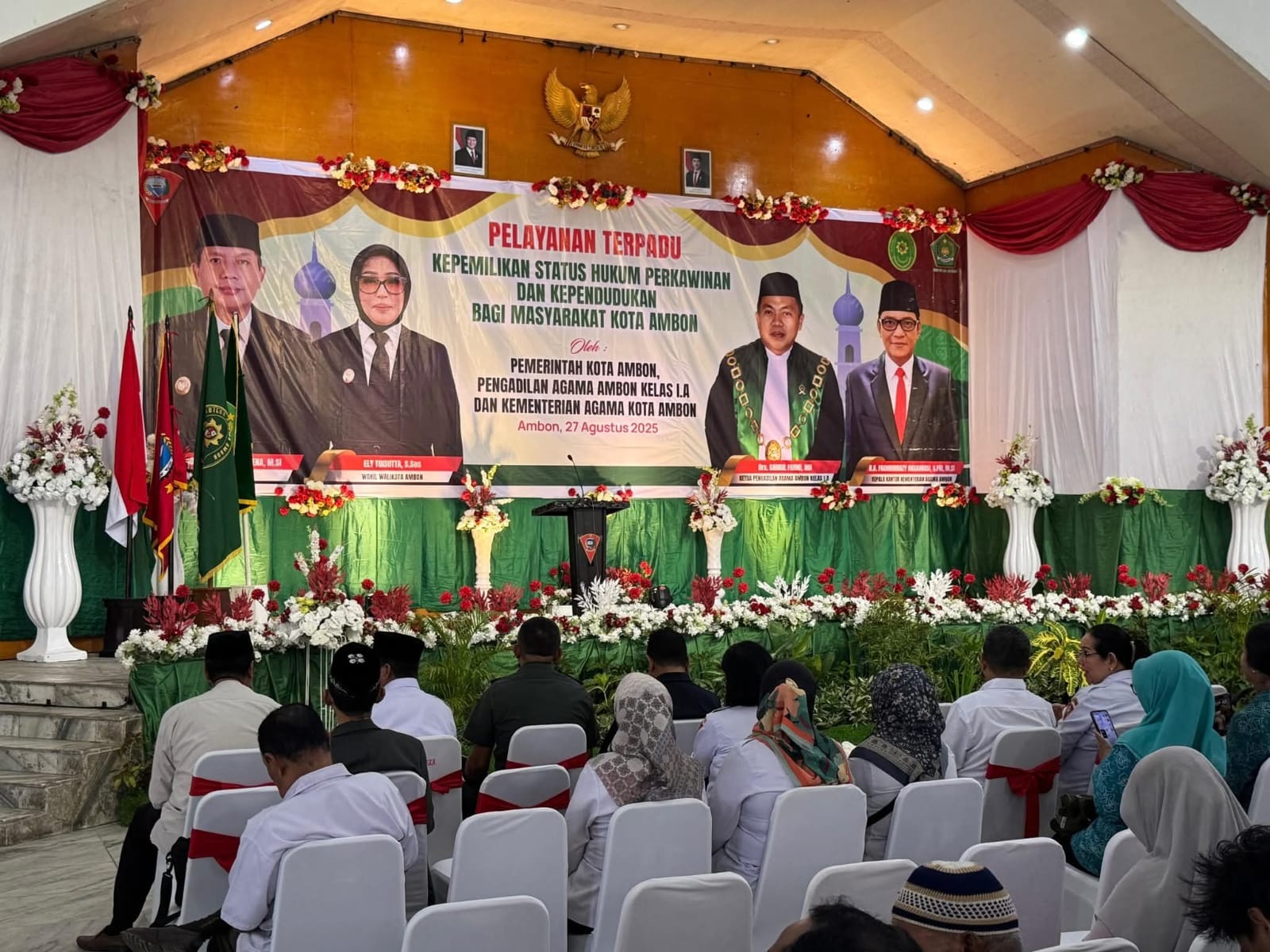 Ambon,moluccastimes.id-Dalam upaya memberikan pelayan terpadu untuk legalisasi pernikahan dan administrasi kependudukan masyarakat, Pemerintah Kota Ambon kolaborasi Pengadilan Agama serta Kementerian Agama menggelar Sidang Isbat Nikah Terpadu di Gedung Ashari Al-Fatah Ambon, Rabu 27/08/2025.