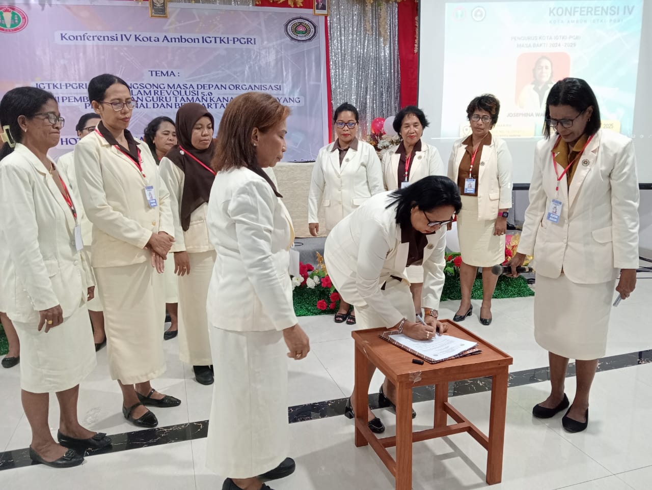 Pengurus yang baru kemudian dilantik oleh Pengurus IGTKI-PGRRI Provinsi Maluku melalui penandatanganan berita acara serah terima. (MT-01)