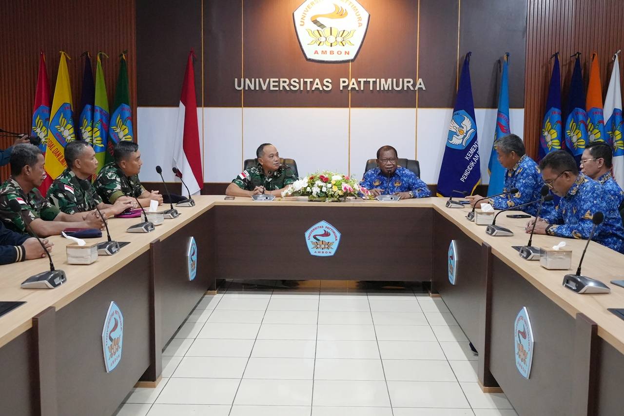 Ambon,moluccastimes.id-Dalam rangka memperkuat sinergi antara dunia Pendidikan tinggi dan institusi pertahanan, Rektor Universitas Pattimura menerima Courtesy Call (CC) Komandan Kodaeral IX, Laksda Hanarko Djodi Pamungkas, S.H beserta jajarannya, di Ruang Rapat Rektor Gedung Rektorat Unpatti, Kamis 19/02/2026.