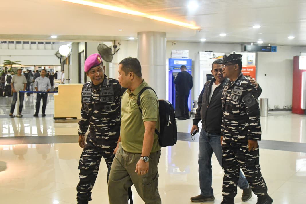 Tampak hadir menjemput Irtum Kodam XV/Pattimura, Kolonel Inf Andi, Ir Kodaeral IX, Kolonel Mar Eko Priyo, Pabandya Itdam XV/Pattimura Letkol Inf Fetmizaldi, Pabandya Itdam XV/Pattimura Letkol Inf Habeahan, Irum Kodaeral IX Letkol (KH) Togar T.A Pangaribuan, dan pejabat terkait lainnya.(MT-01)