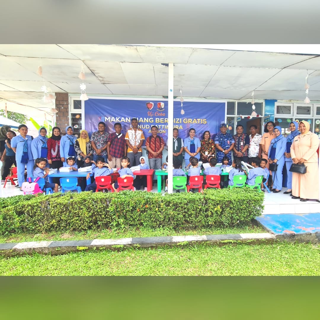 Ambon,moluccastimes.id-Dalam rangka mendukung program pemerintah untuk meningkatkan kualitas gizi anak-anak, TNI Angkatan Udara Lanud Pattimura melaksanakan uji coba pemberian makan siang bergizi gratis di TK dan SD Angkasa Lanud Pattimura.